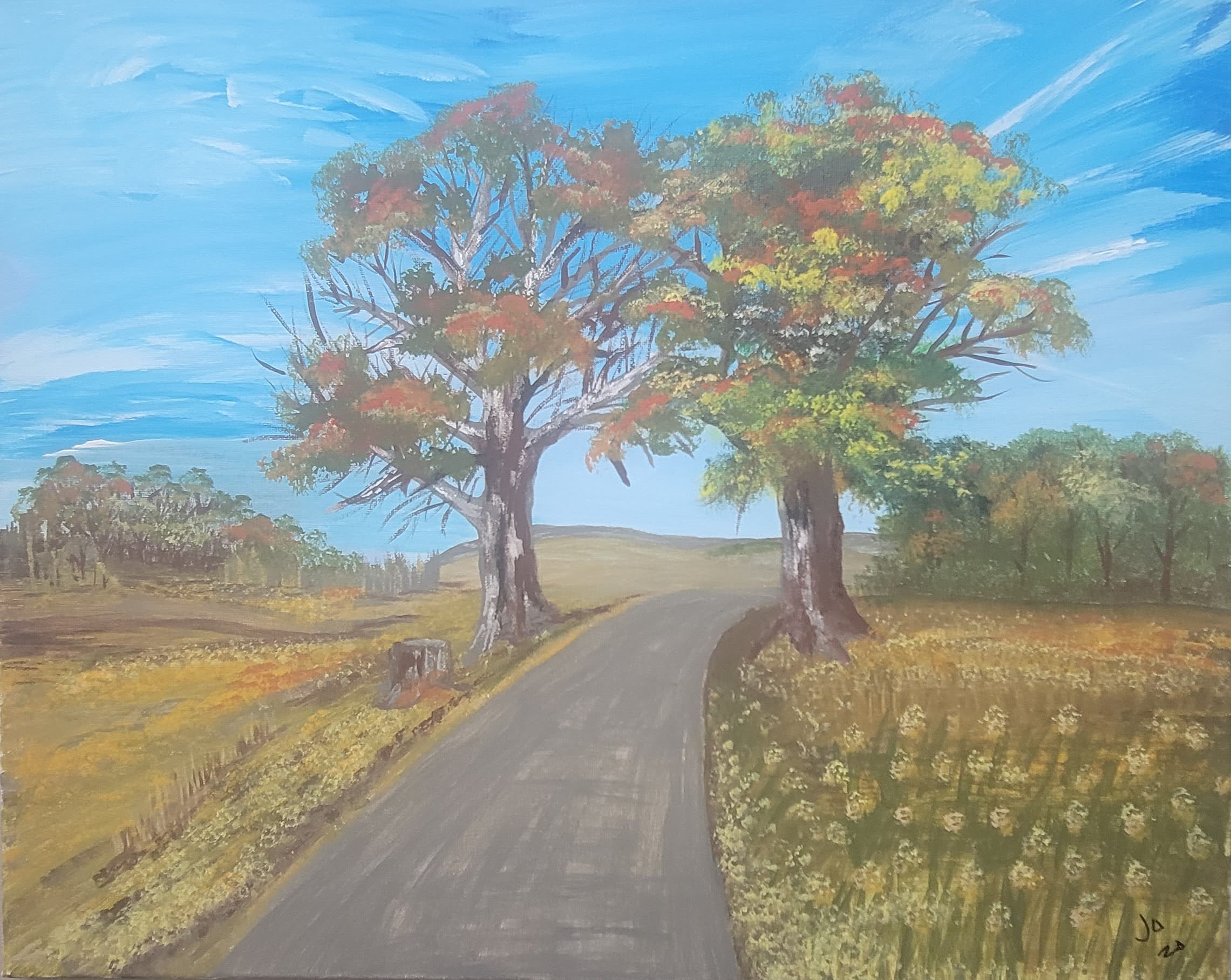 I drive this road fairly often but today I saw these 2 trees bridging the left and right.