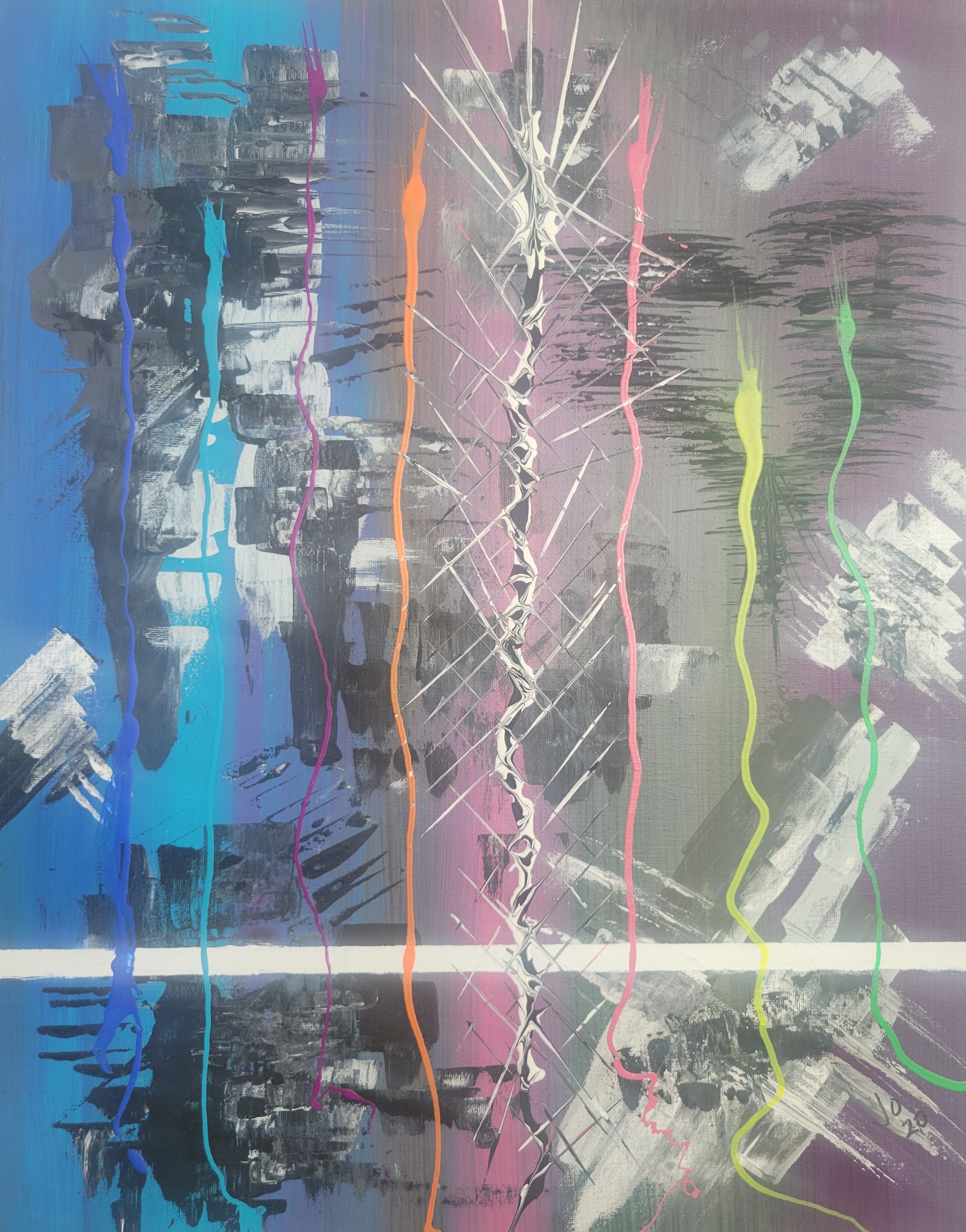 Painted as companions, Electric Spark 20-89A, Electric Pulse 20-89B and Electric Meltdown 20-89C was an idea to create a set of fun, energetic paintings that could be displayed together or idividually.