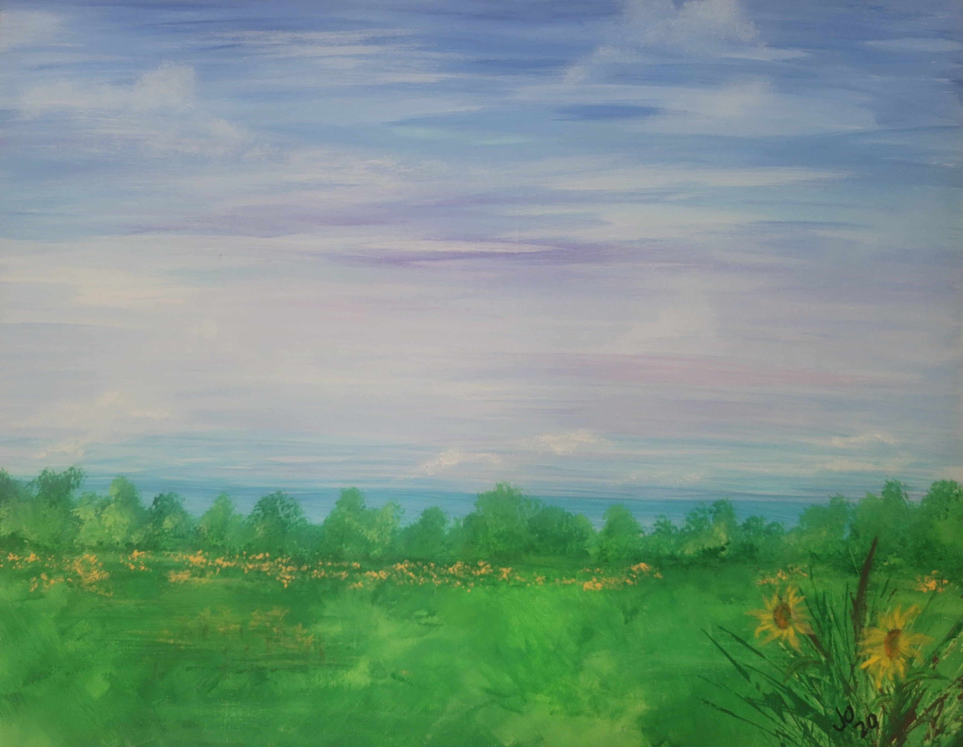 The Missouri Bottoms, near the confluence of the Missouri and Mississippi Rivers. These beautiful lush meadows are splattered with flowers. The river is in the distance just seems to kiss the sky.