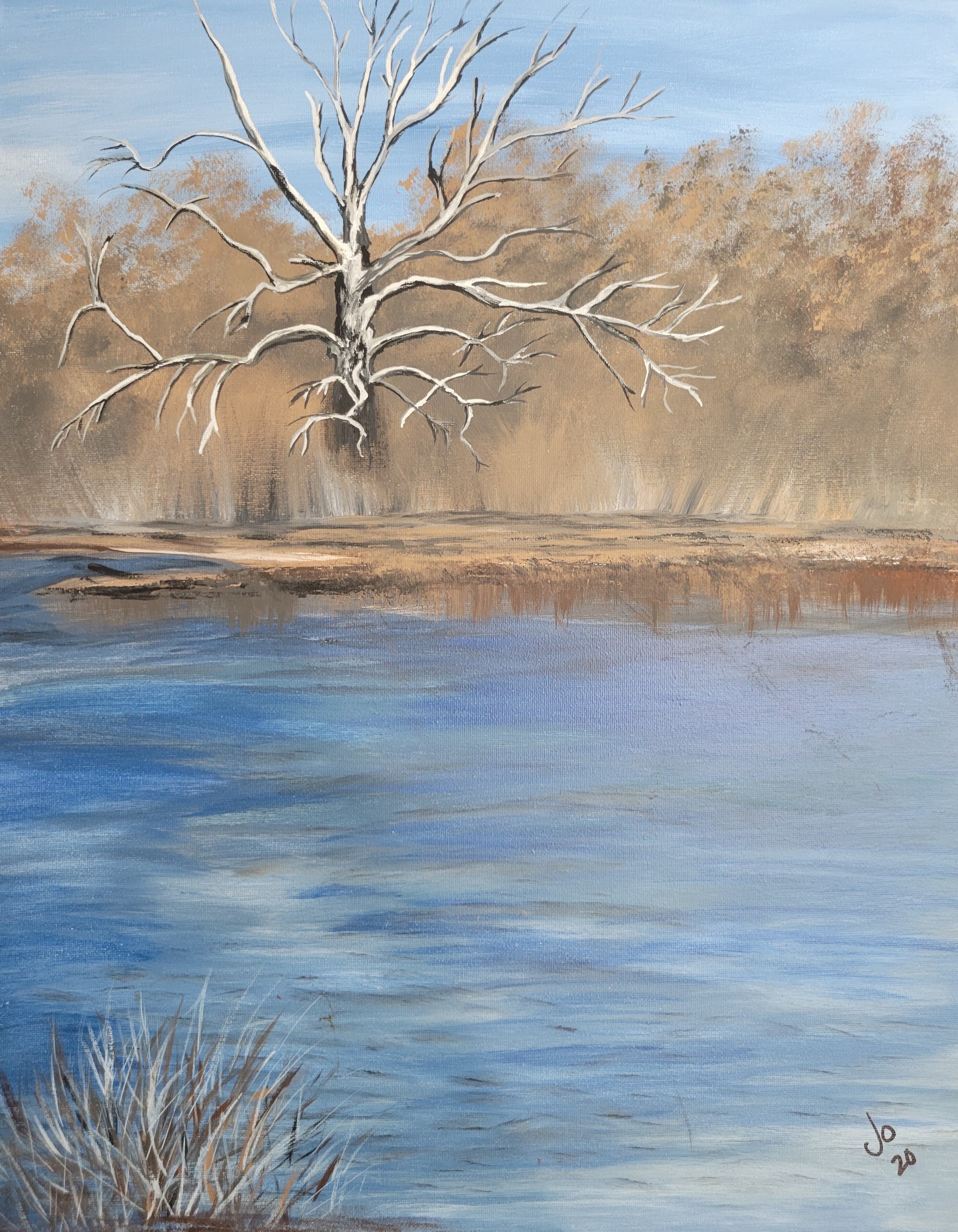 Standing strong on the bank of the river, this mighty tree demands attention. Most certainly over 100 years old. If these trees could talk!